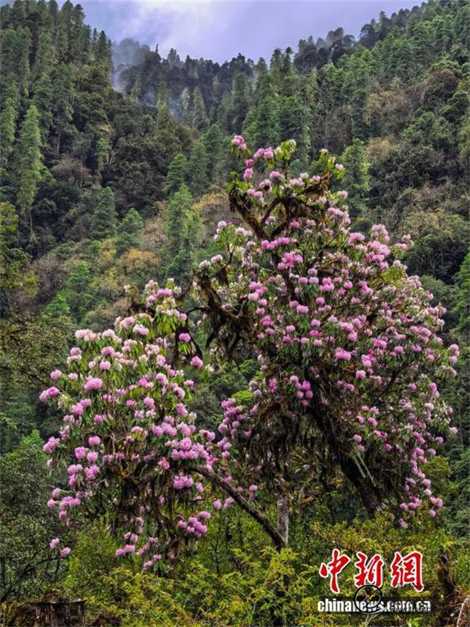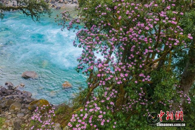 近日,流经西藏那曲市嘉黎县至林芝市波密县的易贡藏布(也称易贡河)流域,迎来高山杜鹃最佳观赏期。作为雅鲁藏布江的二级支流,易贡藏布两岸山峦叠嶂,高山峡谷间,成片高山杜鹃竞相绽放。粉白、紫红的花朵点缀于苍松翠柏之间,与蜿蜒的河流相互映衬,构成一幅壮丽的高原生态画卷。图为3月28日,奔腾的易贡藏布与盛开的高山杜鹃。